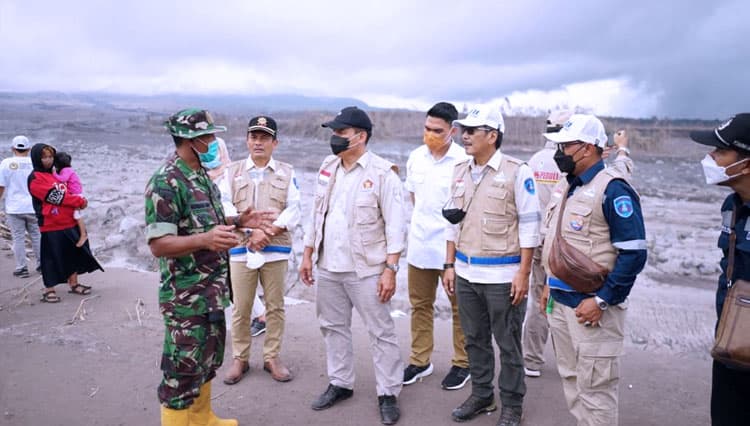 TIMES Manado/Ketua Dewan Penasehat Partai Gerindra DPD Jawa Timur, Bambang Haryo Soekartono bersama DPC Partai Gerindra Surabaya, Lumajang dan Malang saat meninjau dan menyerahkan bantuan Bencana Erupsi Gunung Semeru.Foto Partai Gerindra Jatim